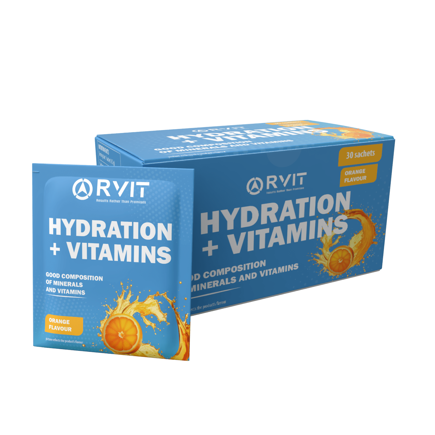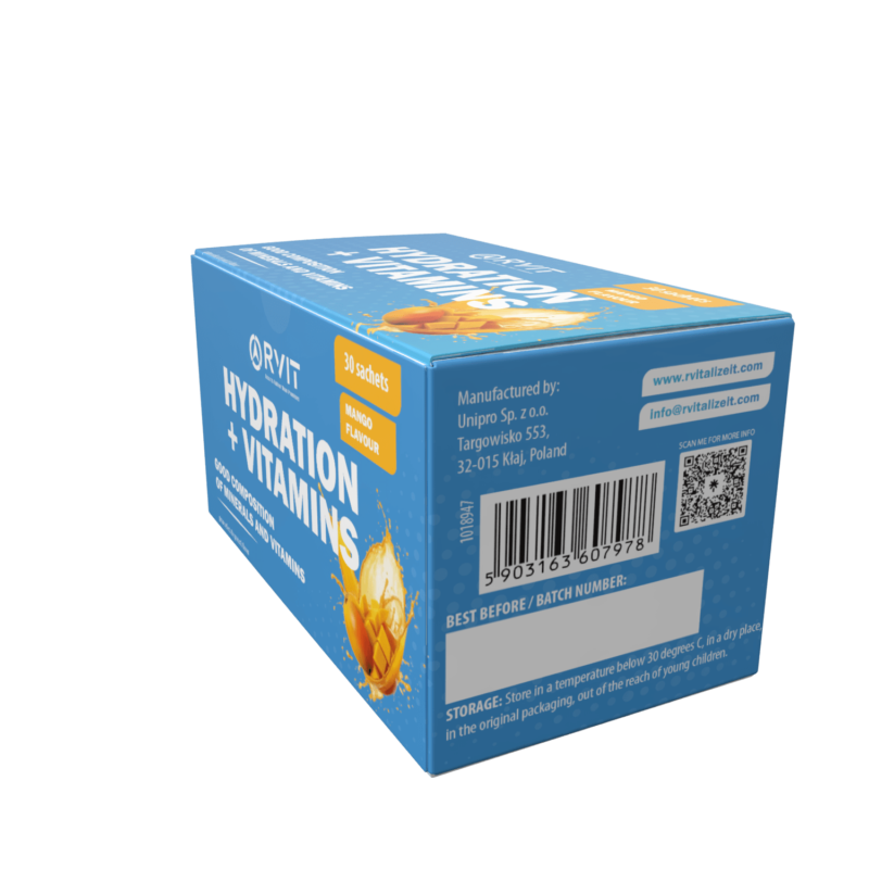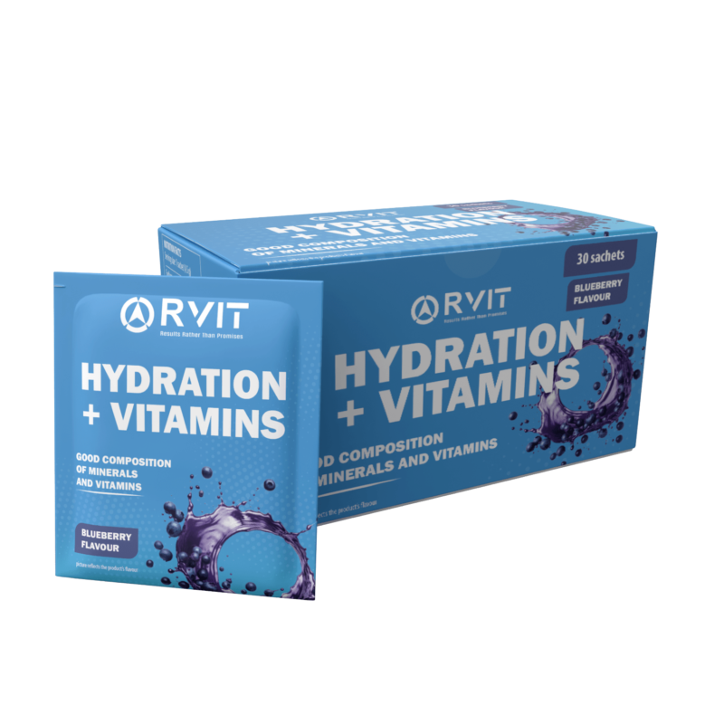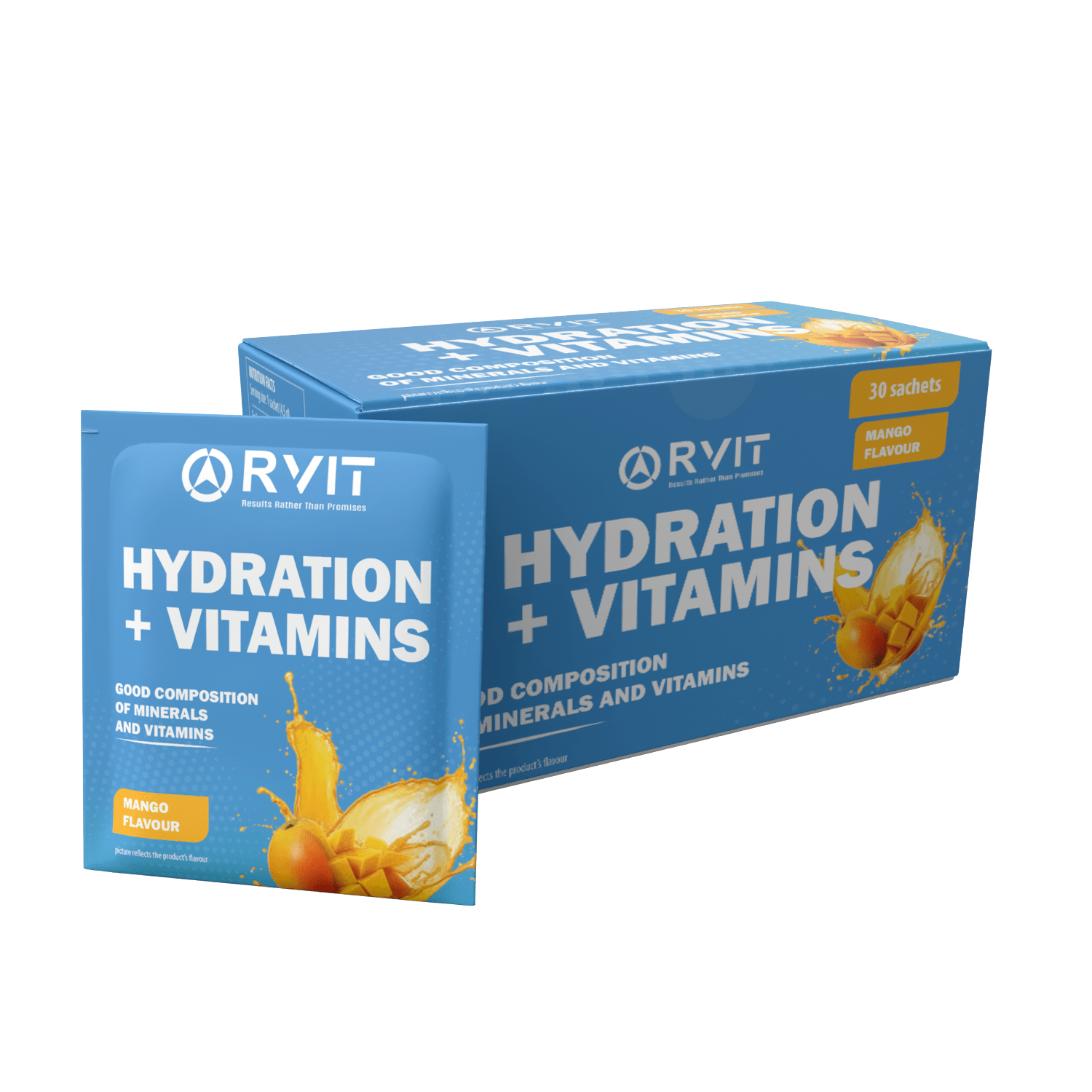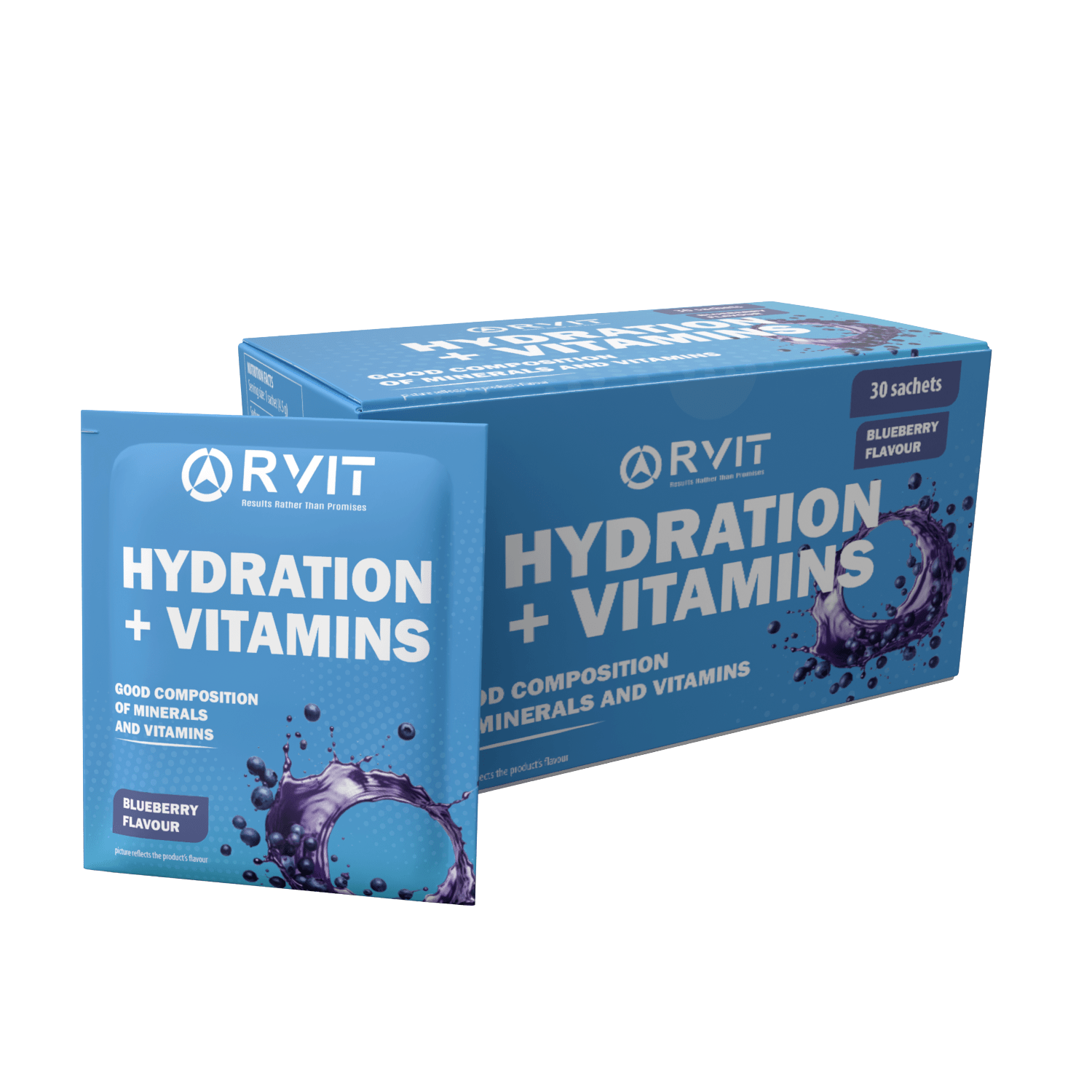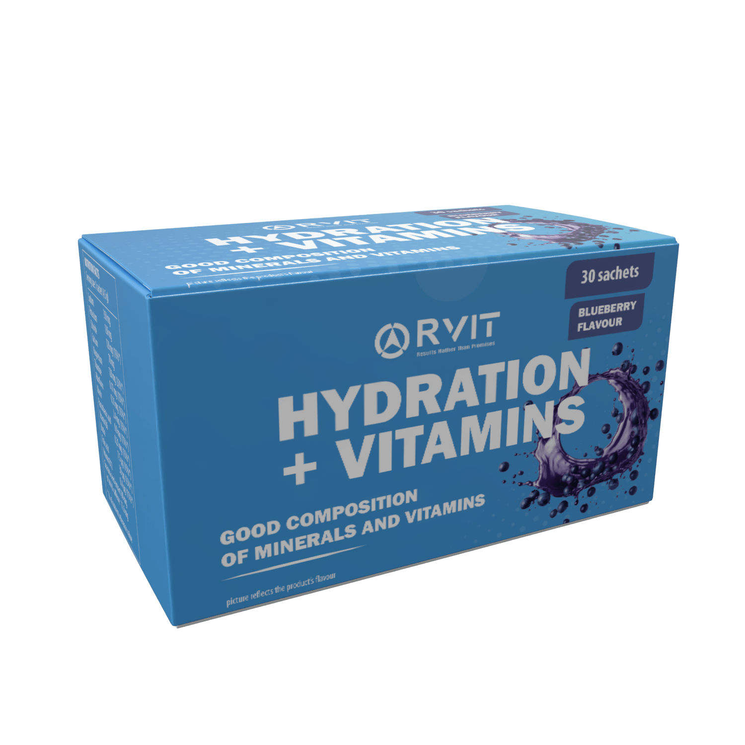 HYDRATION + VITAMINS. Food supplement. With sweeteners. It is a combination of vitamins and minerals designed to compensate for the body’s hydration deficit on hot days or after heavy physical exertion. Sodium supports muscle and nerve function. Potasium and magnesium improve bone health. B-complex vitamins reduce stress and symptoms of anxiety.