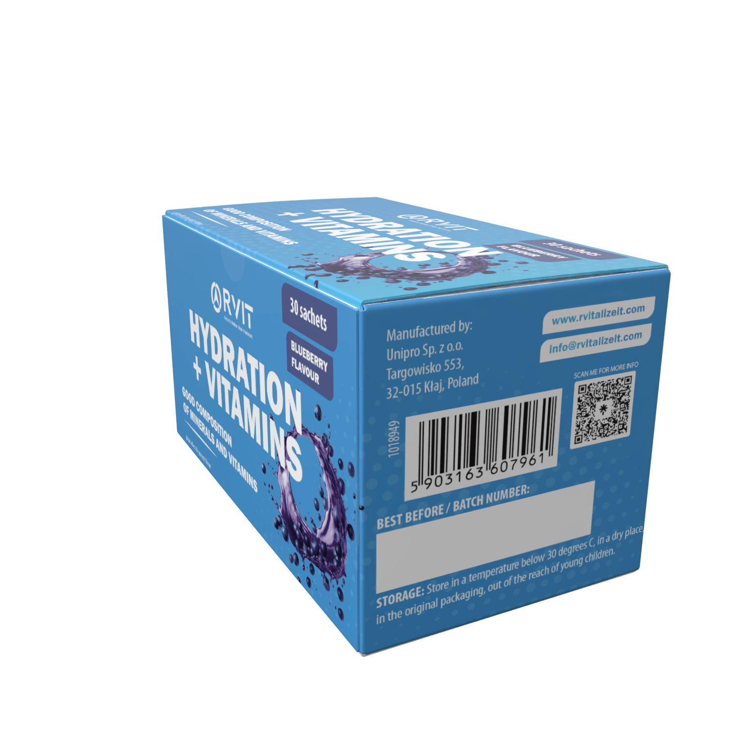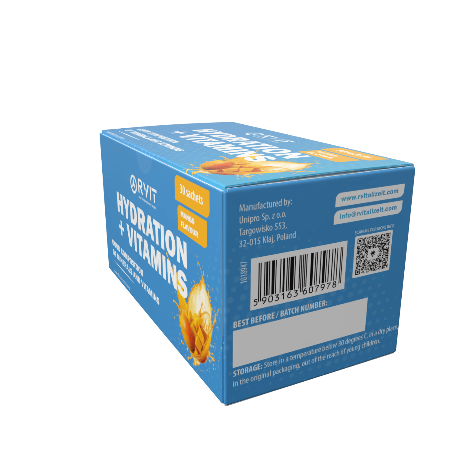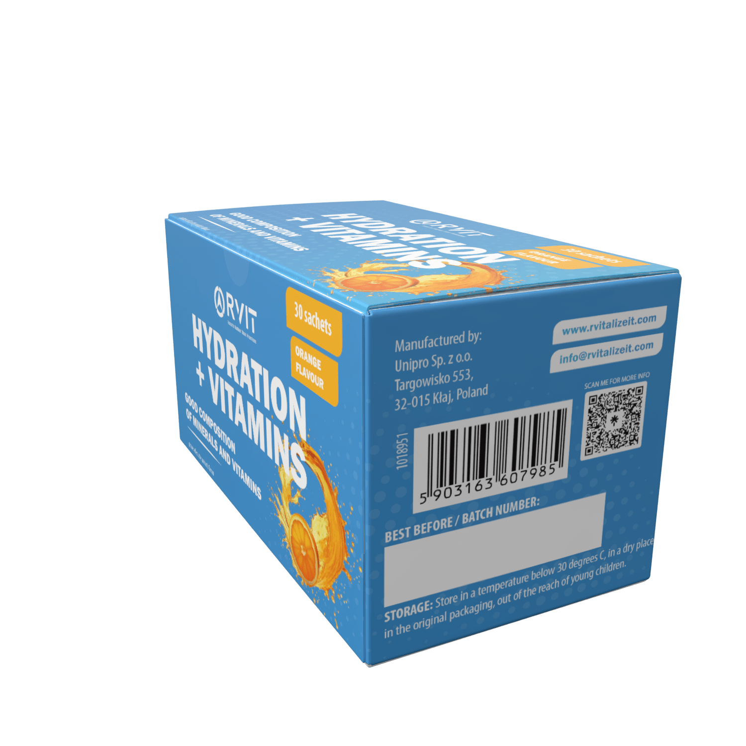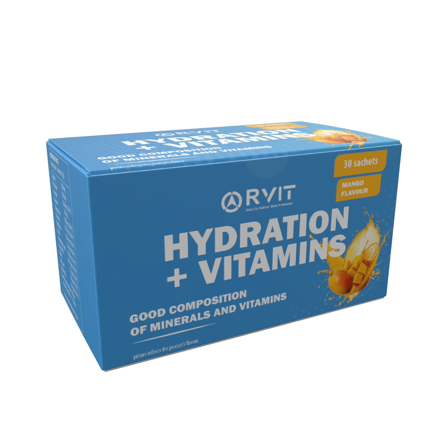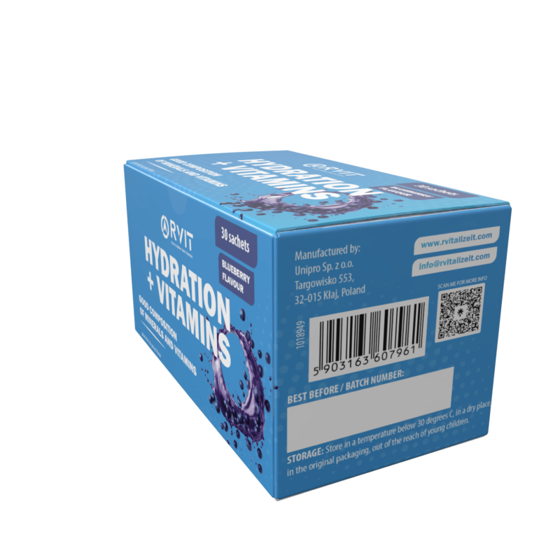 HYDRATION + VITAMINS. Food supplement. With sweeteners. It is a combination of vitamins and minerals designed to compensate for the body’s hydration deficit on hot days or after heavy physical exertion. Sodium supports muscle and nerve function. Potasium and magnesium improve bone health. B-complex vitamins reduce stress and symptoms of anxiety.